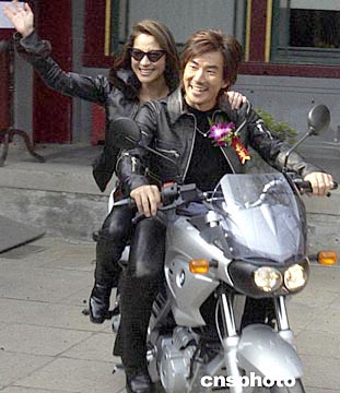 這部影片不愧為動(dòng)作片,幾位明星整裝待發(fā),楊紫瓊、任賢齊以一身黑色皮衣褲出場(chǎng),一前一后颯爽地坐在銀色摩托車上,以片中的動(dòng)作造型展示給記者。雖然兩人首次做搭檔,造型獨(dú)到,創(chuàng)意新奇,導(dǎo)演馬楚成也認(rèn)為兩人的組合是天造地設(shè),但從外型、氣質(zhì)來(lái)看,還是受到記者們的質(zhì)疑,難道這部影片也要表現(xiàn)“姐弟戀”?楊紫瓊風(fēng)度極佳地回應(yīng)道:“你們是認(rèn)為任賢齊不夠男人,還是我老了?”一句話惹得眾人哄堂大笑,一向好搞笑耍寶的小齊更以“正襟危坐”之狀顯“威風(fēng)”。