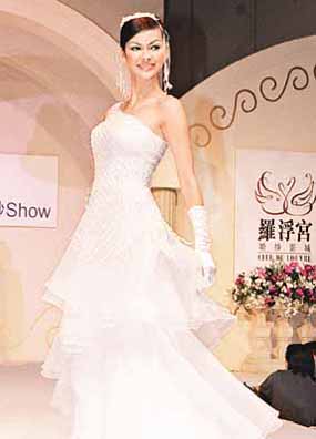 中新網(wǎng)3月31日電 “香港婚紗、婚宴暨蜜月旅游博覽2003”昨日舉行,周汶锜(Kathy)、姚嘉妮、歐陽妙芝及Rosemary等,為不同單位展示艷麗的新款婚紗及晚裝。Kathy在活動中更澄清與男友杜德偉的感情沒有出現(xiàn)問題,并非在人前扮恩愛。