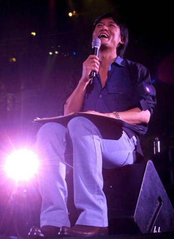 之后出場的表演嘉賓黃品源也不忘借機(jī)幽了周華健一默說∶“還痛不痛?我剛才很擔(dān)心!(周∶我沒事!)我是擔(dān)心接下來的演出會要我?guī)兔ν瓿!”氣得周華健險些就要“拳腳相向”向他揮過去!接下來兩人你一言我一語的“留”字接口令,更是將整個氣氛搞輕松,尤其是黃品源一句“留長發(fā)是為了遮住一邊的眼睛,好讓自己看得更清楚,‘一目了然’!”能言善道的周華健也被黃品源的“急智”給搞到語塞,笑得接不下去。
