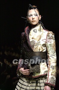 日本著名時(shí)裝設(shè)計(jì)師HIROKO KOSHINO四月三日晚在二00三年東京秋冬時(shí)裝展上發(fā)表了她的最新作品,希望通過現(xiàn)代手法來表現(xiàn)日本傳統(tǒng)服飾的美感。作者:陶光雄