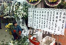 四月七日香港歌迷告別巨星張國榮追悼會將在香港殯儀館舉行。圖為殯儀館附近的鮮花店生意繁忙。錢興強 攝