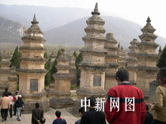 少林寺塔林位于河南省登封少林寺西側。為全國塔林之冠。塔林是歷屆少林寺高僧、住持、大和尚圓寂后置放骨灰的墓塔區(qū)。