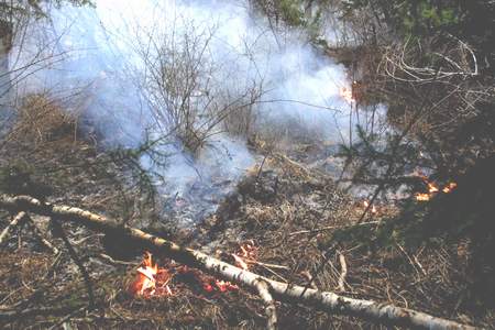 火情就是命令,接到火警后,迭部林業(yè)局和迭部縣召開緊急會議,緊急抽調(diào)人員前往救火,并成立了由迭部縣縣長楊志才、迭部縣林業(yè)局局長黃志洋為臨時總指揮的現(xiàn)場指揮部,設(shè)置滅火、后勤、偵察、醫(yī)療救護等小組,緊急投入撲救工作。在進入崗嶺溝的不遠處,記者看見濃煙彌漫,隱天蔽日,濃烈的焦糊味夾雜著絲絲煙塵撲面而來,在崗嶺溝兩邊的山坡上,不時會看到?jīng)_天火光,沿著溝底前行,沿途被大火燒毀的林地里橫七豎八躺著許多百年古松的殘根斷枝,慘狀不堪入目。