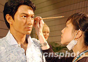 第二十七屆香港國(guó)際電影節(jié)頒獎(jiǎng)禮四月十七日晚在香港文化中心舉行, 倫敦杜莎夫人蠟像館特意將精心制作的劉德華蠟像在頒獎(jiǎng)禮上展示,引人注目。錢興強(qiáng) 攝
