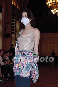 圖:巴黎時裝展 模特戴上防“非典”口罩