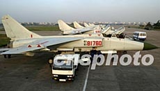 中國海軍航空兵某飛行部隊的國產(chǎn)“飛豹”戰(zhàn)機,今春四月轉戰(zhàn)某地整裝待發(fā)。這支飛行部隊剛完成了大機群跨區(qū)機動和黃昏攻擊截擊和高空特技等訓練,在新型空艦導彈和空空導彈實射中,命中率均達100%。作者:張全躍