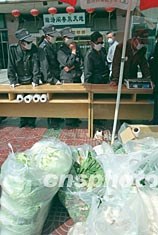 四月下旬的北京蔬菜市場(chǎng)受預(yù)防“非典”影響,價(jià)格曾一度上漲。政府采取調(diào)集限價(jià)供應(yīng)等有效措施,使市場(chǎng)蔬菜價(jià)格現(xiàn)已全面回落。作者:張勤