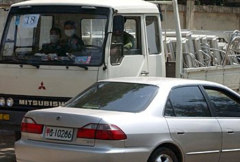 軍車(chē)穿梭往來(lái)準(zhǔn)備向“非典”開(kāi)戰(zhàn)。