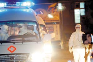 晚上11時,兩名全身武裝的醫(yī)生和兩名司機(jī)上了兩輛隔離車,隔離車迅速啟動,這兩輛開往地壇醫(yī)院的隔離車出發(fā)了。接著,其他醫(yī)務(wù)人員也鉆進(jìn)隔離車,開往北醫(yī)三院的5輛隔離車也開動了。晚上11時30分許,35輛隔離車全部出發(fā),另外兩輛備用隔離車也停在京昌路上隨時等候調(diào)遣。