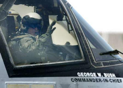 美國總統(tǒng)布什年輕時曾經(jīng)擔(dān)任得克薩斯州國民警衛(wèi)隊?wèi)?zhàn)斗機飛行員,但自從入主白宮后,這位“戰(zhàn)爭總統(tǒng)”根本沒機會過把駕機癮。每次出遠門,總是先從白宮乘“海軍陸戰(zhàn)隊一號”直升機抵達機場,然后轉(zhuǎn)乘“空軍一號”專機。1日,為前往美“林肯號”航空母艦發(fā)表有關(guān)伊拉克戰(zhàn)爭結(jié)束的講話,同時鼓舞士氣,這位總統(tǒng)竟然提出要乘坐F-18型雙座教練機從圣迭哥飛行數(shù)百公里降落在航空母艦甲板上,然后在當(dāng)天晚上9點(北京時間2日上午9點)發(fā)表全國講話,宣布伊拉克境內(nèi)戰(zhàn)斗“基本結(jié)束”,但是“不達最終目的,美軍絕不收兵”。