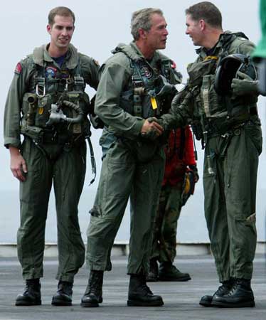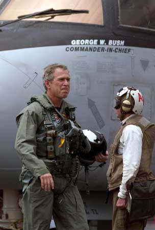 暗藏玄機(jī)之四,布什政府未來行動(dòng)之四:布什乘戰(zhàn)機(jī)上航母做演講這一系列動(dòng)作顯然還有明顯的國內(nèi)政治意圖。美國《紐約時(shí)報(bào)》聲稱,讓布什上航母演講除了是撈最大程序的政治影響之外,沒有其它的解釋。布什總統(tǒng)被充滿笑臉的美國大兵包圍的情景顯然是2004年競選連任最佳的布景。勑路迹