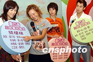 由香港無(wú)線電視制作的《盧巧音~三色糖的情式》特輯首映會(huì)五月二日在香港舉行,圖為盧巧音、譚俊彥、周永恒、江芷妮等出席首映會(huì)。錢興強(qiáng) 攝