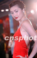 5月6日,在香港舉行的首屆中藝寶石展上,模特演繹一套“花月情緣”的寶石鉆飾鮮艷奪目。中新社記者:洪少葵