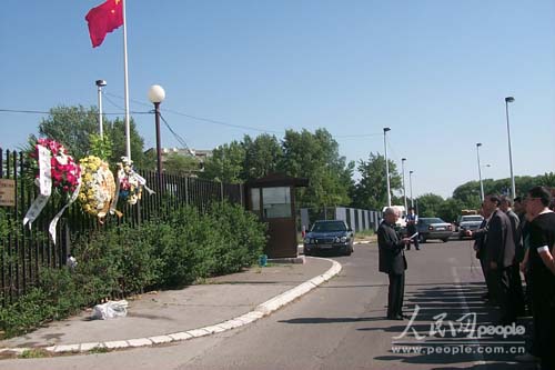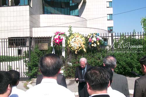 中新網5月7日電 人民網貝爾格萊德消息:中國駐塞爾維亞和黑山大使館全體工作人員、中國駐塞黑全體新聞工作者和旅南華人華僑代表今天上午在中國駐南大使館館舍廢墟前集會,沉痛哀悼在1999年美國轟炸中犧牲的3名中國烈士。