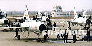駐守黃海地區(qū)的海軍航空兵殲擊機部隊,在春季超低空攻擊與截?fù)粲?xùn)練中,戰(zhàn)機編隊快速加油提高戰(zhàn)斗力。汪漢宗 攝