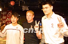 中新網(wǎng)5月12日電 姚明抿著嘴,伸開他21厘米長(zhǎng)的手掌,就象在NBA賽前臨戰(zhàn)一樣。不過,11日晚,姚明參加的是另一場(chǎng)“戰(zhàn)斗”,抗擊“非典”的戰(zhàn)斗。