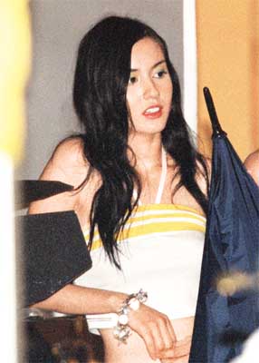 身穿露膊背心的Mandy,長發(fā)披肩,外表清純,與初出道的張柏芝有七分相似,Mandy三圍雖不似張柏芝激凸,但其32、24、34的三圍穿起吊帶背心時卻顯得青春無敵,難怪周星馳第一眼便看中了她,更說Mandy前途無可限量。