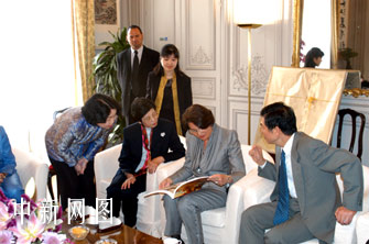 拉法蘭總理夫人一進(jìn)大門,就對(duì)迎候的中國(guó)駐法大使吳建民和夫人施燕華公參說:“訪問中國(guó)是我的一個(gè)愿望。由于中國(guó)目前發(fā)生的特殊情況,我沒能于上月隨同丈夫一起訪華,感到非常遺憾。今天我把原本要一同訪華的所有夫人們帶到這里,參觀巴黎的中國(guó)---新近成立的巴黎中國(guó)文化中心,也是了卻一個(gè)心愿!