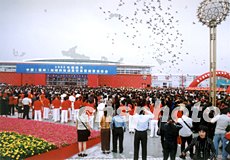 中新社福州五月十八日電(記者黃鴻斌 陳悅)今天上午,福州金山新展城繁花似錦,鑼鼓喧天,二00三年中國(福州)海峽科技成果交易暨經(jīng)貿(mào)洽談會在此隆重開幕。