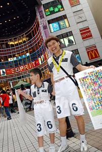 香港丑星“八兩金”父子作善事,售賣海報(bào)。