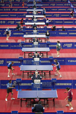 浪漫的法國人沒有在開幕式上展現(xiàn)他們的藝術細胞和想象力,剛承載了一天比賽的球臺依然端放在場地中央,成為最切合世乒賽主題的“道具”,以播音員播報和彩色大屏幕閃現(xiàn)參賽國名及國旗的方式省略了運動員入場儀式,使開幕式變得簡短而實在。但當法國乒協(xié)主席韋爾唐在率先致辭后高呼:“法國萬歲!世乒賽萬歲!乒乓球萬歲!”時,沒有人不相信,充滿激情的法國人也將使這次大賽成為一次充滿激情的賽事。
