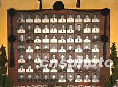 追悼會(huì)會(huì)場(chǎng)正前方懸掛著鮮花翠柏簇?fù)淼?0名遇難官兵的遺像。1200名海軍官兵和部分親屬代表參加了追悼會(huì)。作者:中新社