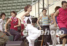 歌星梅艷芳5月23日出席香港大球場茁壯行動(dòng)「1:99音樂會(huì)」彩排,梅艷芳身兼「1:99音樂會(huì)」總監(jiān)在炎熱的天氣下,落力督導(dǎo)彩排。中新社傳真 鄧慶樂 攝