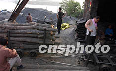 5月28日,河南安陽安利煤礦井口一批用作支柱的木料等待運(yùn)往井下。由于出現(xiàn)新的坍塌和涌水,救援人員及時(shí)運(yùn)送木料至井下加固巷道,以保護(hù)救援人員的安全,加快救援進(jìn)度。作者:慎重