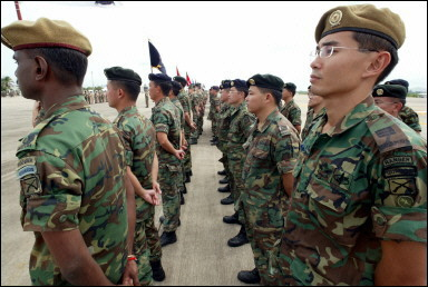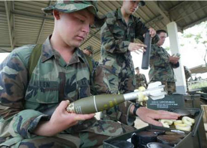 (三)向其盟國展示武器裝備,為美國軍火商推銷武器做廣告。如果說,戰(zhàn)場(chǎng)是美國軍火商最大的武器推銷場(chǎng),那么,演習(xí)場(chǎng)就是美國軍火商的第二大武器推銷場(chǎng)。海灣戰(zhàn)爭(zhēng)讓美國軍火商掙足了鈔票,科索沃戰(zhàn)爭(zhēng)又讓美國軍火商們大撈了一把,戰(zhàn)爭(zhēng)已經(jīng)成為美國兜售武器的最佳時(shí)機(jī),這似乎已成為美國屢試不爽的法寶。然而,在沒有戰(zhàn)爭(zhēng)的和平時(shí)期,演習(xí)場(chǎng)就成了美國最好的武器推銷場(chǎng)。近幾年,亞太一些國家為實(shí)現(xiàn)軍隊(duì)現(xiàn)代化投入了巨資,這樣一個(gè)難得的軍火出售機(jī)會(huì),美國是絕不會(huì)放過的。通過“金色眼鏡蛇”演習(xí)美國將向其盟國展示其武器裝備的優(yōu)越性能,以引起這些國家的濃厚興趣,為美國軍火商在亞太軍火市場(chǎng)占有更大的份額打下基礎(chǔ)。(聞新芳)