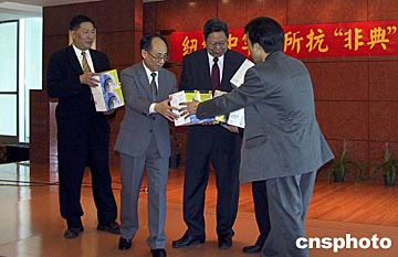 中新社紐約五月三十日電(記者趙海燕)主要由旅美臺灣同胞組成的傳統(tǒng)僑團中華公所三十日上午將一萬五千只口罩送到中國駐紐約總領館,以此表達對祖國大陸抗擊“非典”的支持。
