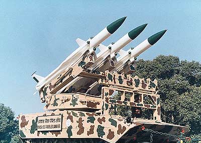 “天空”導(dǎo)彈是印度國(guó)防研究發(fā)展組織正在研制的5種導(dǎo)彈系統(tǒng)之一。這種導(dǎo)彈重650公斤,有兩級(jí)推進(jìn)器,可攜帶50公斤負(fù)荷。導(dǎo)彈射程25公里,機(jī)動(dòng)性強(qiáng),已經(jīng)過多次試射,即將裝備部隊(duì)。