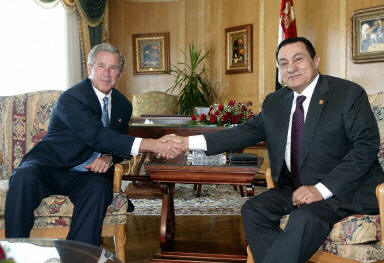 中新網(wǎng)6月3日電 美國總統(tǒng)布什3日抵達(dá)埃及位于紅海海濱的度假勝地沙姆沙伊赫,與埃及總統(tǒng)穆巴拉克舉行會(huì)談。他們將參加有關(guān)中東和平的首腦會(huì)議。