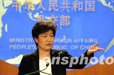 六月三日,中國(guó)外交部發(fā)言人章啟月在例行新聞發(fā)布會(huì)上就中國(guó)國(guó)家主席胡錦濤出訪等問(wèn)題回答中外記者的提問(wèn)。中新社記者:盛佳鵬