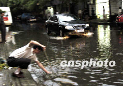 受蒙古南下冷空氣和北上暖濕氣流的共同作用,今天上午還晴空萬里的北京城突然迎來了一場大暴雨,不一會兒功夫整座城市便被如注的暴雨吞沒。許多下班的人剛走幾步就已渾身濕透。環(huán)路上馳過的汽車?yán)鹆碎L長的水花,更有些地方的瞬間積水淹至小轎車的車燈,令不少司機不得不脫去鞋襪,挽起褲腿,推車前行。這也是北京五月份以來的第九次雷陣雨天氣。氣象專家說,今天部分地區(qū)還刮起了六七級的大風(fēng),一些郊區(qū)縣還下起了冰雹。