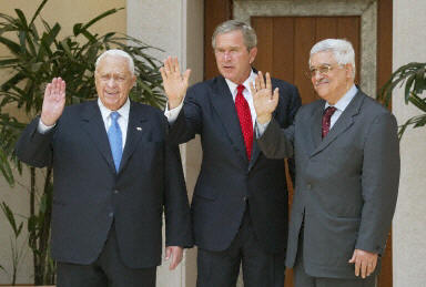 另據(jù)報道,約旦國王阿卜杜拉二世4日在亞喀巴王宮分別會見美國總統(tǒng)布什、以色列總理沙龍和巴勒斯坦自治政府總理阿巴斯,并在三方會晤結(jié)束后主持了記者會。
