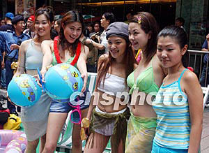 圖:香港救市出奇招泳裝女模街頭巡游
