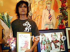 “激情英倫時尚”時裝設計大賽(廣州賽區(qū))十一日在中國大酒店舉行頒獎典禮,二十四歲的華南農業(yè)大學學生林進亮獲一等獎,他將與北京、上海、和重慶賽區(qū)的優(yōu)勝者進入總決賽,爭奪赴英國留學一年獎學金的大獎。作者:陳文