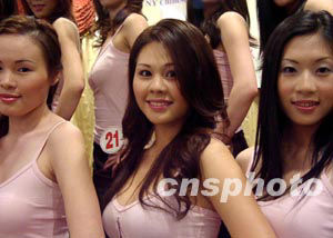 二○○三年紐約華裔小姐競選經(jīng)過初選,入圍的二十九名佳麗當(dāng)?shù)貢r間十一日首次亮相。她們的年齡在十六至二十四歲之間,分別出生于美國、印尼、馬來西亞、中國大陸和香港、臺灣,其中出生于大陸的幾乎占一半。作者:龔文謨