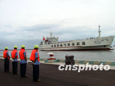 十四日中午一時(shí),一聲汽笛長鳴,“粵海鐵二號”火車輪渡駛進(jìn)了粵海鐵南港港池,十五分鐘后大副將一號纜拋向南港碼頭——“粵海鐵二號”與他的兄長“粵海鐵一號”在粵海鐵南港碼頭首尾相望勝利會師。