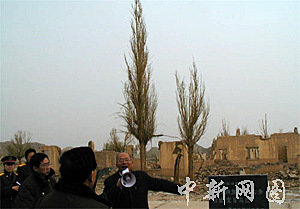 中國酒泉衛(wèi)星發(fā)射中心指揮部原址,圖為該中心原副主任劉慶貴向參觀者介紹中心組建時(shí)的歷史。中新社記者 孫自法 攝
