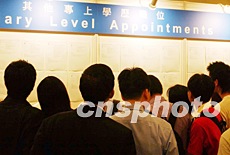 2003年6月17日,香港政府公布最新一季失業(yè)率,稱(chēng)其升至8.3%的歷史高位,主要原因是SARS對(duì)勞工市場(chǎng)的影響加劇。圖為正在此間舉行的勞工處招聘坊,提供570個(gè)空缺,吸引眾多香港專(zhuān)業(yè)人士前往應(yīng)聘。中新社記者:潘索菲