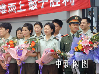 今天出院的病人,最大的65歲,最小的15歲。他們顯得特別興奮,一出院門就拼命向我們揮手,我把手里的鮮花獻給了一個女孩,她用不太標準的手勢向我敬了一個軍禮,“謝謝解放軍,希望你們也能趕快回家和親人團聚!彼⑿Φ負P起了臉,在陽光下洋溢著健康的一張娃娃臉,我喜歡這張臉。