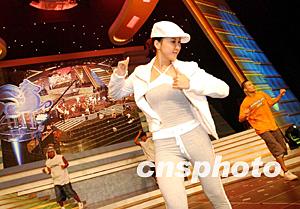 國際級(jí)歌手李玟應(yīng)邀出席「2002/2003年度香港賽馬會(huì)冠軍人馬獎(jiǎng)?lì)C獎(jiǎng)典禮」,20日與舞蹈演員彩排節(jié)目。作者: 洪少葵