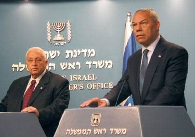 鮑威爾在會晤后與沙龍舉行的聯(lián)合記者招待會上表示,巴勒斯坦方面不能僅僅通過與巴激進組織達成;饏f(xié)議來停止暴力活動,而應(yīng)該摧毀他們制造暴力的能力。鮑威爾還指責(zé)巴勒斯坦伊斯蘭抵抗運動(哈馬斯)是“和平的敵人”。