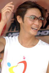 2003年6月22日,香港歌手陳驊在香港維多利亞公園舉行的“同心攜手畫出彩虹”嘉年華活動(dòng)上,為賓客演唱大會(huì)主題歌曲《同心攜手畫出彩虹》。中新社記者 錢興強(qiáng)