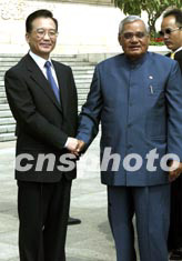 會(huì)談前,溫家寶總理在人民大會(huì)堂東門外廣場(chǎng)為瓦杰帕伊總理舉行了隆重的歡迎儀式。會(huì)談結(jié)束后,雙方將舉行有關(guān)文件的簽字儀式。