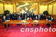 中國總理溫家寶與印度總理瓦杰帕伊二十三日上午在北京人民大會堂舉行會談,并出席中印關(guān)于簡化簽證手續(xù)的諒解備忘錄等九個文件的簽字儀式。中新社記者:毛建軍