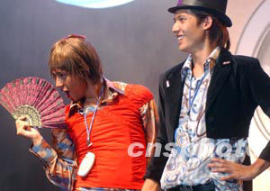香港樂(lè)壇人氣偶像BOYZ,六月二十五日晚在諾基亞香港舉行的產(chǎn)品發(fā)布會(huì)上,擔(dān)任諾基亞3300宣傳大使。 中新社記者 錢興強(qiáng)