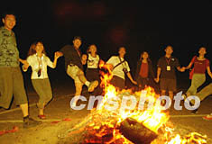 北京朝華科技公司周末組織員工和友好單位到郊區(qū)旅游,舉行篝火晚會(huì),宣泄“非典”造成的心理郁悶。中新社記者 宋吉河 攝