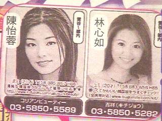 中新網(wǎng)6月30日電 在日本最新一期成人八卦雜志《周刊實話》中,0204號的小廣告中竟然赫然出現(xiàn)了中國臺灣玉女偶像陳怡蓉及林心如的照片,她們不僅被說成是韓國女生,還被冠上了不實年紀(jì)及三圍尺寸。